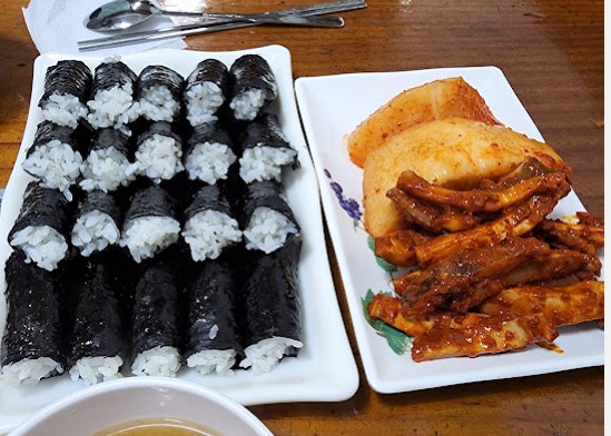 - 깔끔하고 정갈한 충무김밥, 오징어무침과 환상의 궁합